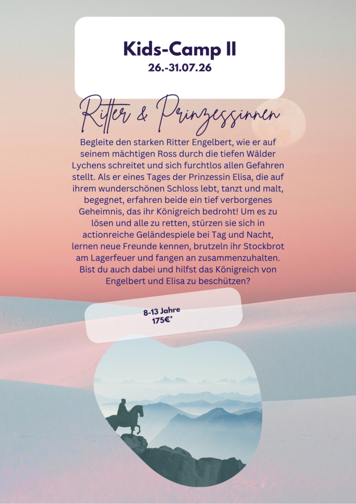 • Noch nie dabei gewesen? Dann gibt’s für dich 25 % Rabatt für dein erstes Camp bei uns – probier’s aus und find´s heraus, warum so viele so gerne wieder kommen 😉
