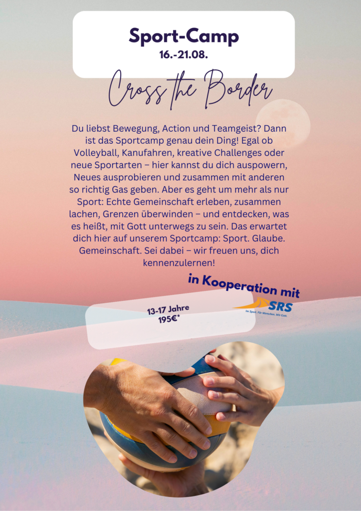 - Aktivitäten: buntes Programm mit erlebnisreichen – und pädagogischen Spielen auf dem Gelände/im Wald, baden im See, der nur 5min zu Fuß entfernt ist, tiefgehende Andachten und Kleingruppen, Workshops, Ausflüge, Lagerfeuer